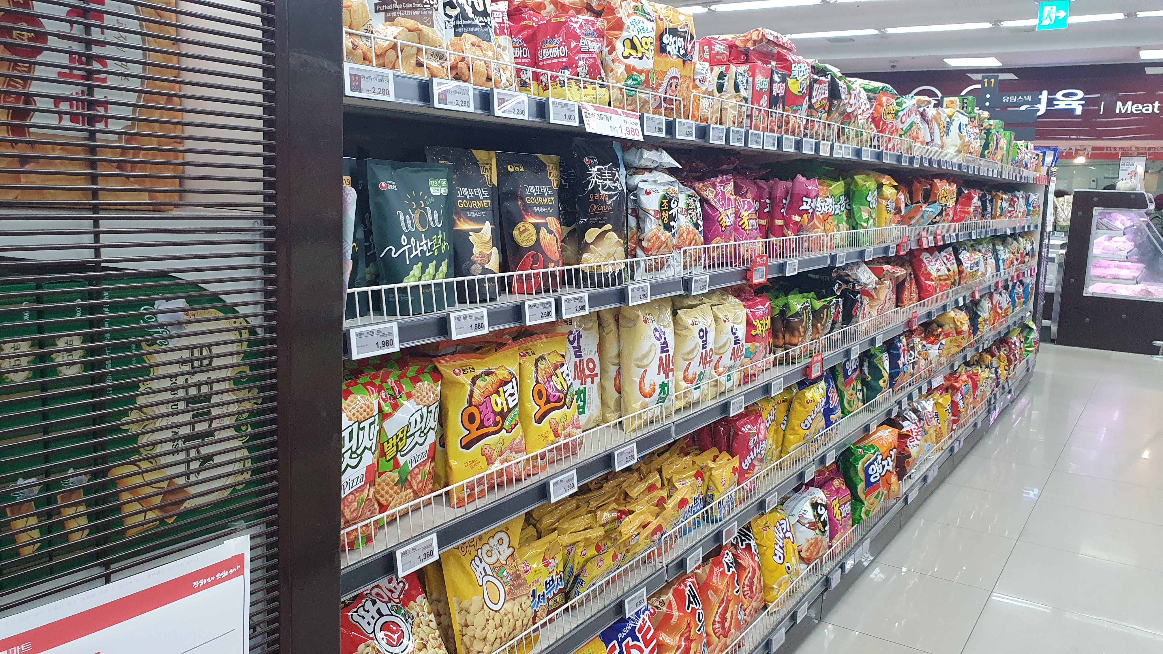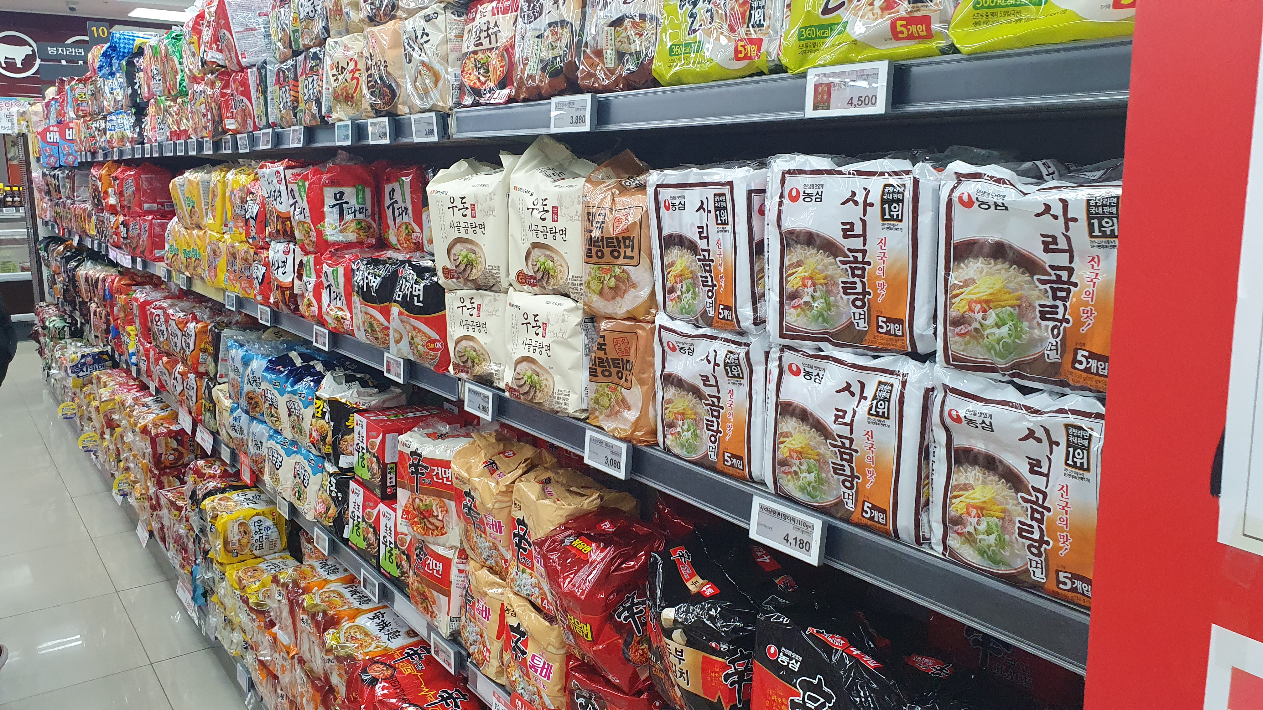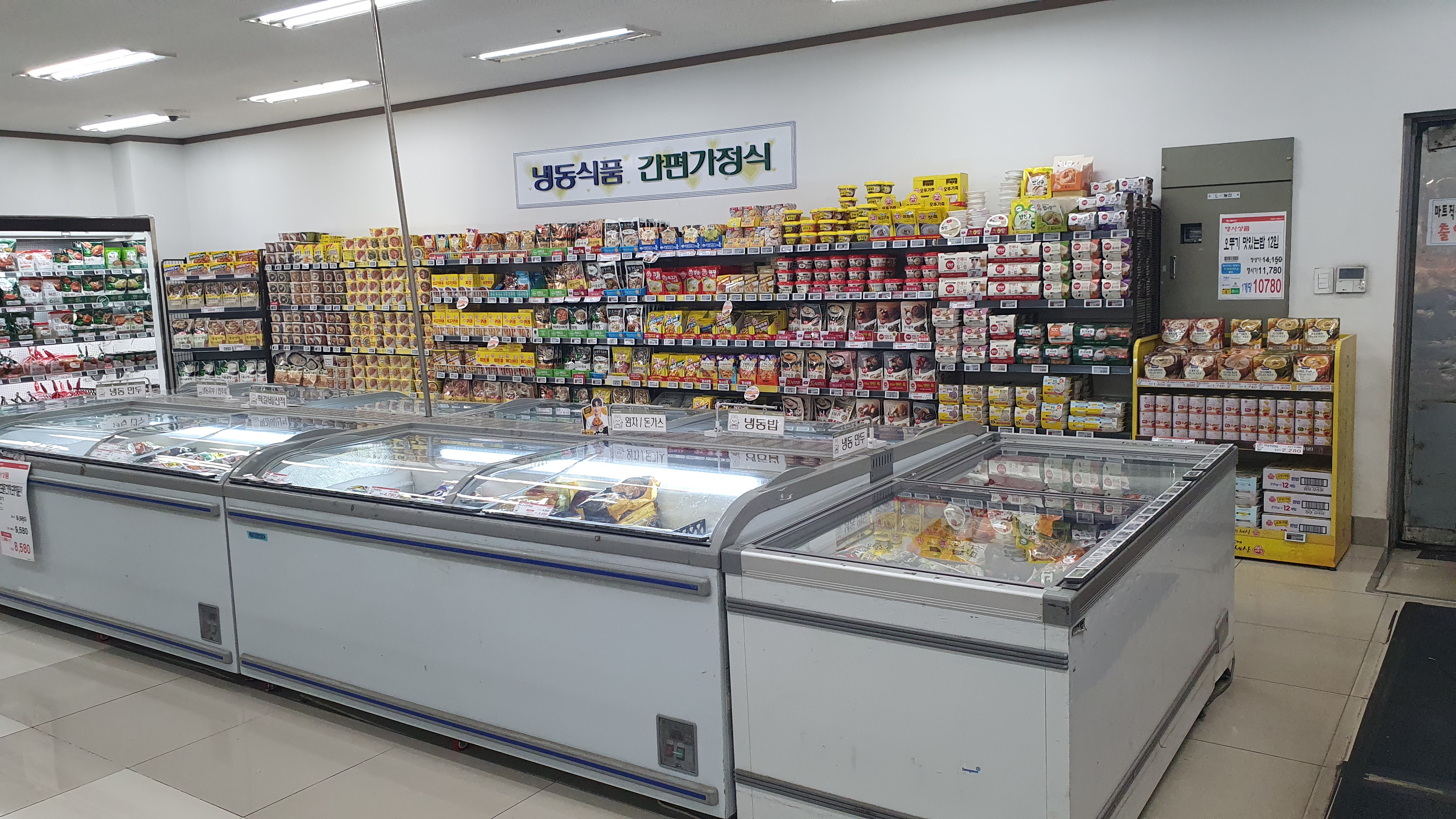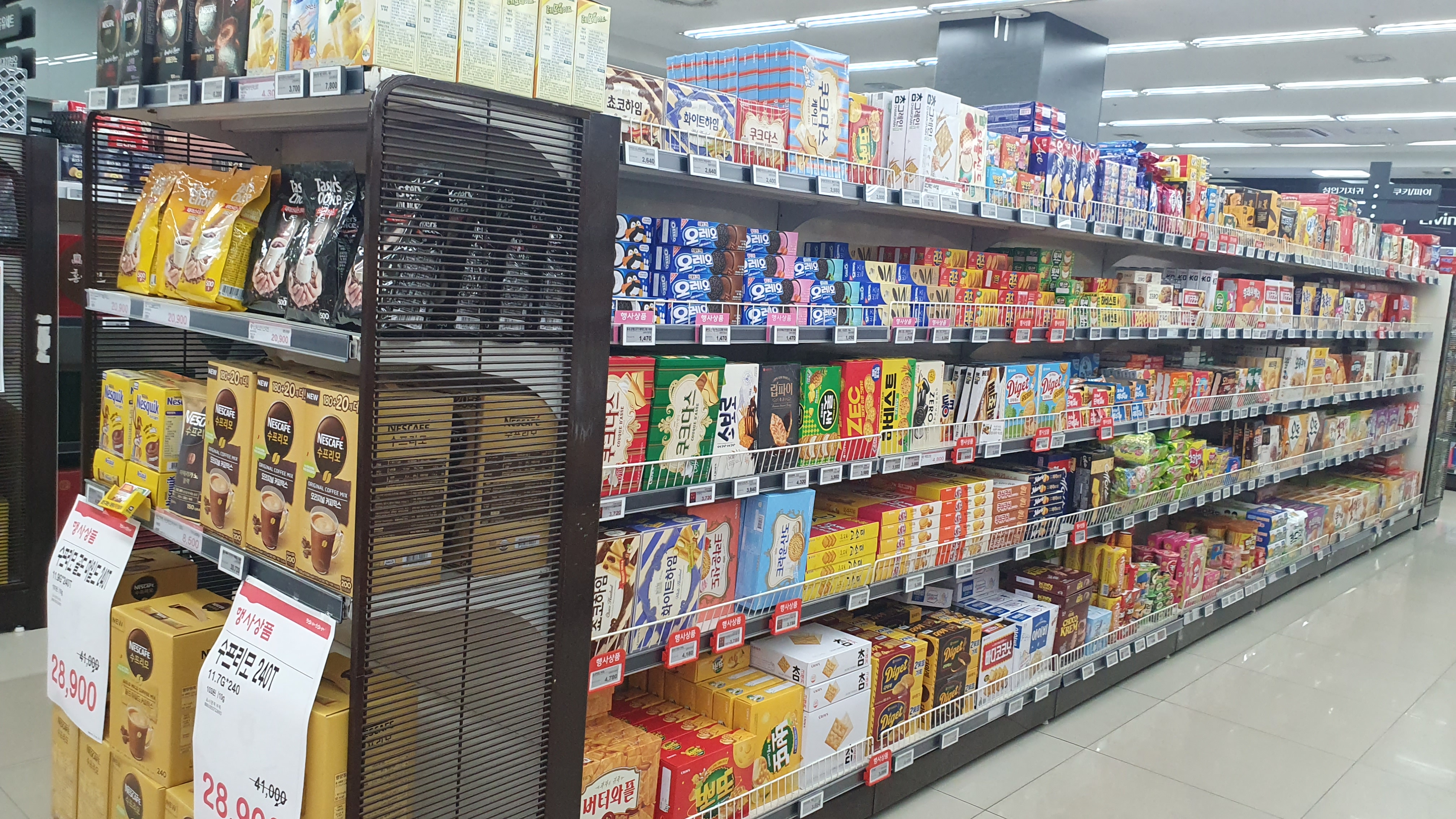 재고회전율을 높이기 위해 식품코너가 매우 넓었는데요. 요즘 인기 있는 라면과 과자류 역시 넓은 공간을 할애하였습니다. 이렇게 진열을 하면 장기채화 상품이 없기 때문에 상품관리에도 많은 도움이 될 수밖에 없습니다.