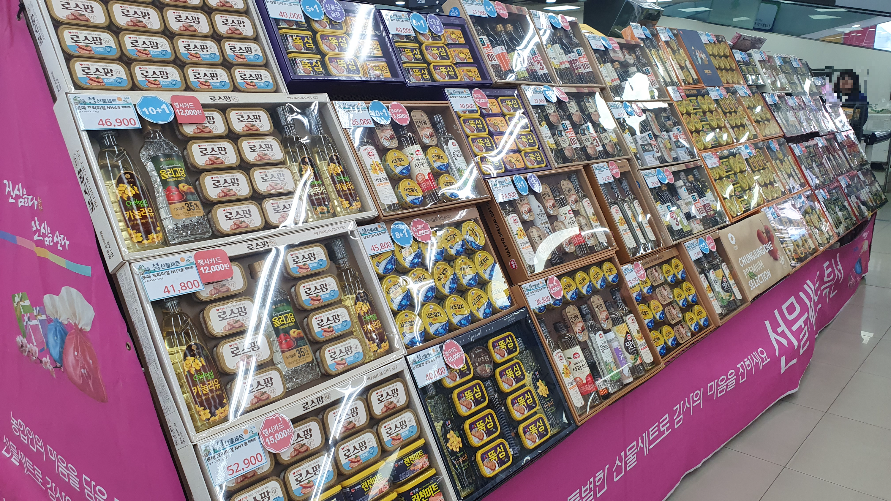 설명절이 다가옴에 따라 선물세트도 별도 공간에 마련되어 있었는데요. 카드할인, 증정등 관리가 매우 잘 되어 있네요.