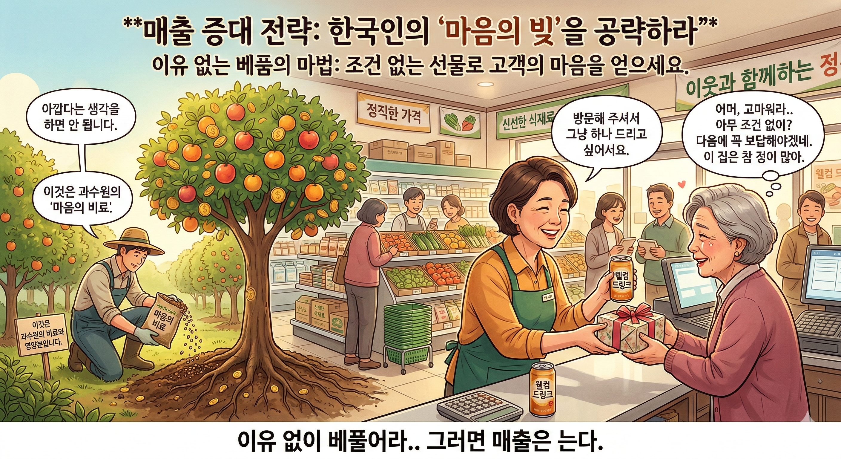 비용을 걱정하기 전에, 내가 오늘 우리 고객에게 어떤 '마음의 비료'를 줄 수 있을지 고민해 보십시오. 매출은 그 고민의 결과로 자연스럽게 따라올 것입니다.